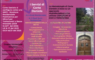 Con piacere comunichiamo l'avvio di un nuovo Servizio Innovativo "Corte Daniela " attualmente il primo nel territorio regionale. Una Comunità inquadrata come SRP3 dedicata a minori di età compresa tra i 6 e gli 11 anni che sono seguiti dai Servizi Sanitari e Sociali e per i quali è necessario un intervento multi professionale. La Comunità ospiterà 6 minori, sia maschi che femmine, in regime residenziale e due in regime semi- residenziale. Due posti del residenziale sono dedicati ai minori che presentano una diagnosi di Spettro Autustico dal Livello 1 al Livello 3. Grande cura è stata dedicata alla formazione di una Squadra di lavoro preparata alle neurodivergenze nei minori nella fascia di età che si andrà ad accogliere. Fondamentale la presenza, nel Gruppo Direzionale, del Consulente Neuropsichiatra che da anni collabora con la Virginia Cooperativa e possiede un’esperienza ventennale nel campo delle neurodivergenze. La Squadra di lavoro sarà costantemente supervisionata da esperti sia nel campo del Trauma Infantile che delle Neurodivergenze.